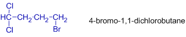 * However, the carbon with more substituents should be given least number as illustrated in the following example i.e. 4-bromo-1,1-dichlorobutane.