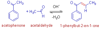 E.g. The aldol reaction of acetaldehyde with acetophenone leads to the formation of 1-phenylbut-2-en-1-one predominantly.