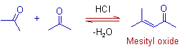 However, mesityl oxide is formed when acetone is treated with dry HCl due to subsequent dehydration of initially formed diacetone alcohol.