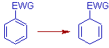 * EWG: The electron-withdrawing groups promote ipso & para reduction. These groups activate the ring towards birch reduction. Initially the protonation occurs para to the EWG.