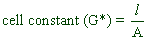 Cell constant (G*): The ratio of the distance between the electrodes, l to the cross sectional area, A of the electrodes is known as cell constant.