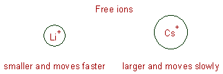E.g. In molten state, the conductivities of lithium salts are greater than those of cesium salts since the size of Li+ ion is smaller than that of Cs+ ion.