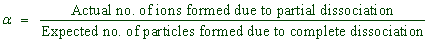 2) Determination of degree of ionization (α) of weak electrolyte: The degree of ionization of a weak electrolyte at a particular concentration is equal to the ratio of actual number of ions formed due to partial ionization to the expected number of ions formed upon complete dissociation.