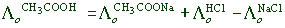 According to Kohlrausch law, the limiting equivalent conductance values of CH3COOH, CH3COONa, HCl and NaCl can be written as follows: